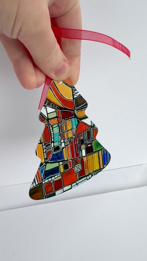 These metal Christmas tree ornaments are durable and will bring holiday cheer for years to come. My painting "Malibu Magenta" is printed on both si...