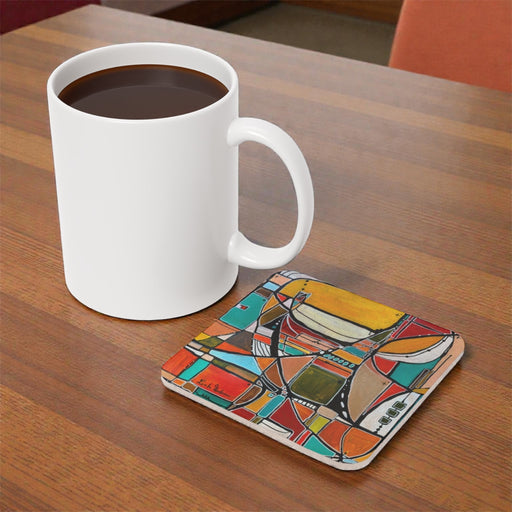 These square hardboard coasters bring a splash of modern color to everyday moments. The glossy top amplifies the layered geometric artwork—teal, aq...