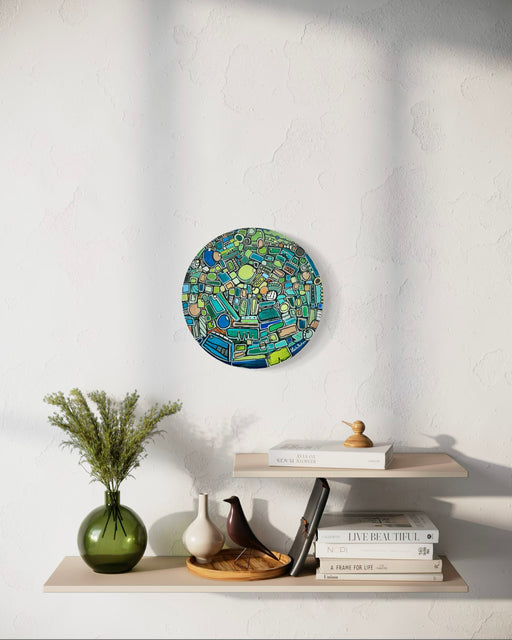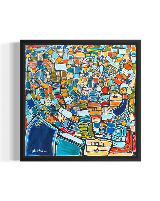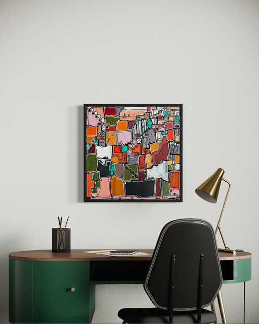 11 x 11 x 1 inches, acrylic on canvas framed in walnut wood. Wired and ready to hang. Exhibited at Palm Springs Modernism Show 2026. Inspiration: A...