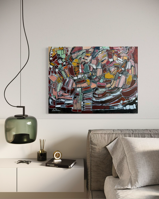 Acrylic on canvas, 40 x 40 inches, (the perfect size for over a large sofa). Exhibited at Palm Springs Modernism Show 2026. Inspiration: Turning...