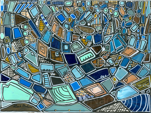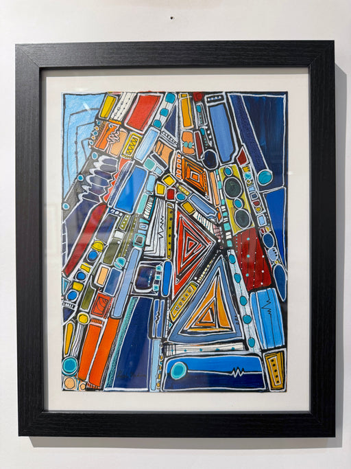 This is an acrylic and oil pastel painting on paper 12 x 9 inches. It can come unframed or framed in black with a 1.5-inch white mat. Own the only ...