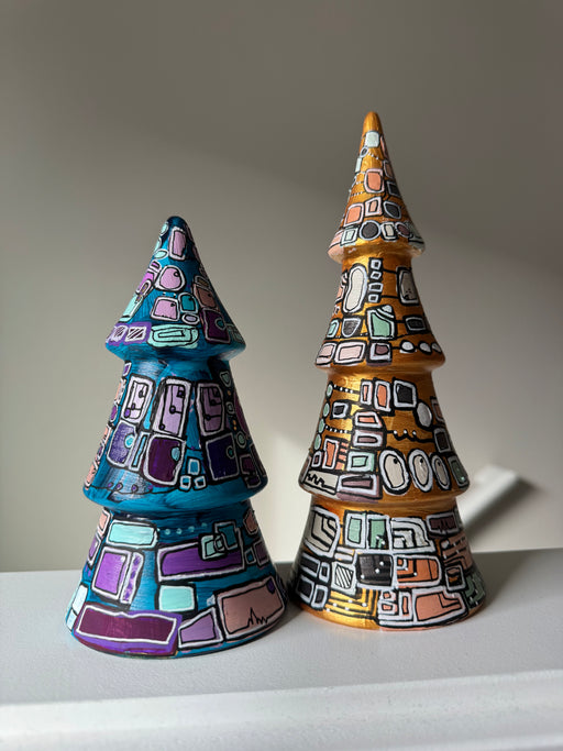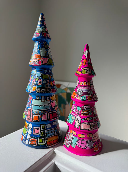 1 XL blue tree, two medium trees (hot pink and gold) and one purple.