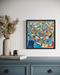 This is an acrylic and oil pastel painting on paper 12 x 12 inches. It can come unframed or framed in black with a 1.5-inch white mat. Own the only original in existence. Once sold, this timeless masterpiece will never be available again.