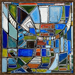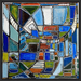 This piece is built from my favorite shade of orange, my favorite shade of blue, and my favorite shade of green, all fusing together into a stained-glass effect that feels like pure energy—like music turned into color.