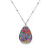 This ellipse pendant necklace brings bright, contemporary color to everyday wear. A glossy, full-color print rests on a white aluminum surface inside a polished zinc-alloy frame, letting bold, jewel-toned patterns stand out against the metal. The delicate chain features small bead accents and a secure lobster clasp so the necklace sits confidently at the collarbone. Wear it with a plain tee to let the artwork sing, layer it with other mixed-metal pieces for a collected look, or give it to someone who loves handcrafted, art-forward jewelry that feels personal and joyful.