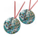 A bright, playful metal ornament that brings a lively pop of color to holiday decorating. s. Lightweight but sturdy, each ornament arrives with a red ribbon threaded through a pre-drilled hole so it’s ready to hang. The double-sided print keeps the pattern visible from every angle, while the scratch- and chip-resistant finish holds up year after year. These ornaments add cheerful, modern energy to a tree, a mantel garland, or a window display — a small, handcrafted-feeling piece that lights up a space with color and movement. These ornaments get rave reviews every single year!